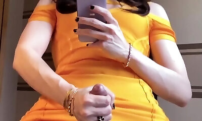 ładny blondynka z kogut ściskając szczelinę masturbować solo