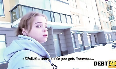 DEBT4k. Teen babe wants to go shopping but first she sucks man-meat