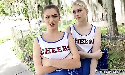 Diminutive cheerleader teen pussyfucked